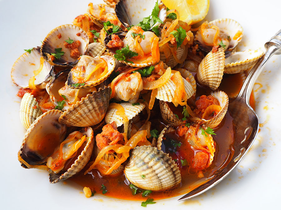 Een lekker recept voor de liefhebbers van schelpdieren. Deze Berbigão com Chouriço (kokkels met chouriço) zijn ideaal voor een warme lentedag! Een lekker en licht verteerbare maaltijd die je maakt met maar een handvol ingrediënten. Daarnaast staat het gerecht binnen een kwartier op tafel. Lekker makkelijk op een vrijdagmiddag en met een frisse salade en wat knapperig brood erbij zijn ze helemaal af.