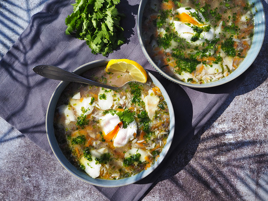 In afwachting van een zonnige lentedag stond deze Canja de Bacalhau & Arroz op de planning. Tot het dan eindelijk zover was en er een stralend zonnetje werd voorspeld! Precies op tijd voor het maandelijkse bacalhau recept. Het is soep, maar wel eentje die wat minder herfstig aanvoelt, al is het alleen maar door de fris ogende kleuren. En een soep op visbasis is toch altijd wat lichter verteerbaar. Ideaal voor een frisse lentedag. Uiteraard maken we het geheel af met een lekker gepocheerd eitje!