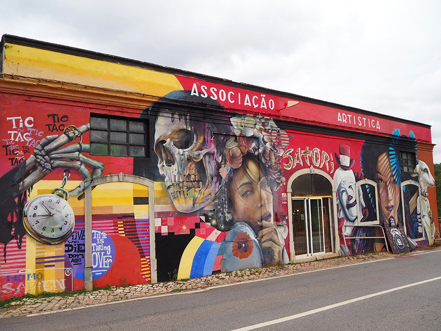 Enigszins onverwachts vind je in Salir, aan de Rua da Pedreira, Associação Artística – Satori. Dit is een jong en creatief project, gevestigd in een oude olijfperserij. Deze artistieke vereniging functioneert als kunstfabriek, een ruimte geheel gewijd aan kunstenaars en de ondersteuning van artistieke presentaties en structuren. De buitenmuren van het pand zijn geheel bedekt met verschillende muurschilderingen. Het loont zeker om even de auto te parkeren en een kijkje te gaan nemen.